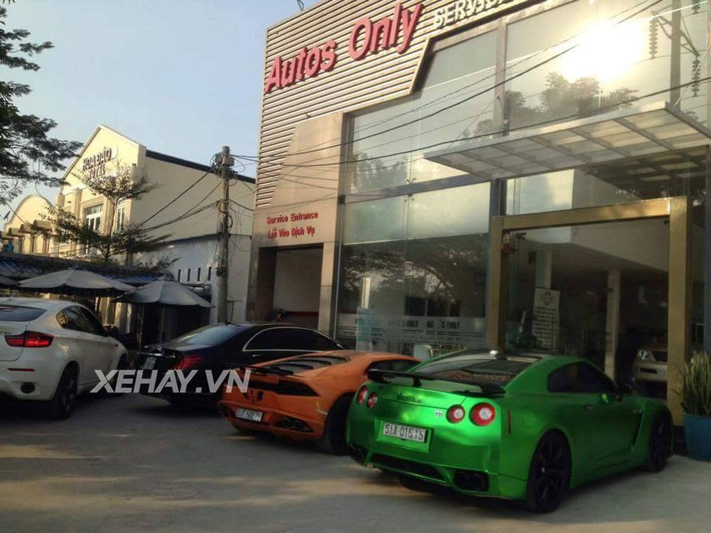 Ngay trước của trung tâm dịch vụ là Nissan GT-R và Lambroghin Huracan LP610-4. Nissan GT-R thuộc sở hữu của một thành viên câu lạc bộ Sài Gòn Team. Trước đó, chiếc xe đã được chủ sở hữu mang tới màu xanh khác biệt hơn thay vì màu trắng nguyên bản. Ngoài thay đổi màu sắc, nắp ca-pô, cánh gió sau được làm lại bằng sợi carbon nhằm tăng điểm nhấn, ống xả tiêu chuẩn được thay bằng ống xả Kreissieg Nhật Bản giúp động cơ có được âm thanh mạnh mẽ hơn.