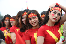 Những fan nữ xinh đẹp thỏa sức khoe sắc, hòa chung vào dòng người hâm mộ tiếp lửa cho thầy trò HLV Park Hang Seo ở trận chung kết AFF Cup 2018 lượt về với Malaysia.
