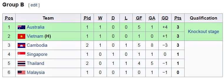 Xếp hạng bảng B tam thời