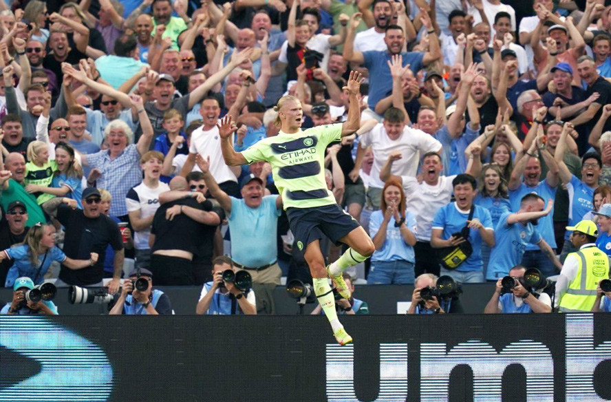 Haaland, trung phong hàng đầu đầu tiên mà Pep Guardiola ký hợp đồng trong gần 20 năm huấn luyện, với những pha bóng đẳng cấp đã giúp Man City có khởi đầu lý tưởng.
